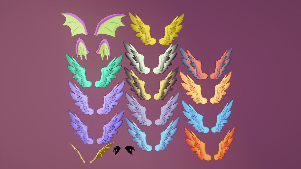 More than 160 hair and tails for Mane 6, their parents, Cutie Mark Crusaders, as well as LOTS of supporting characters.